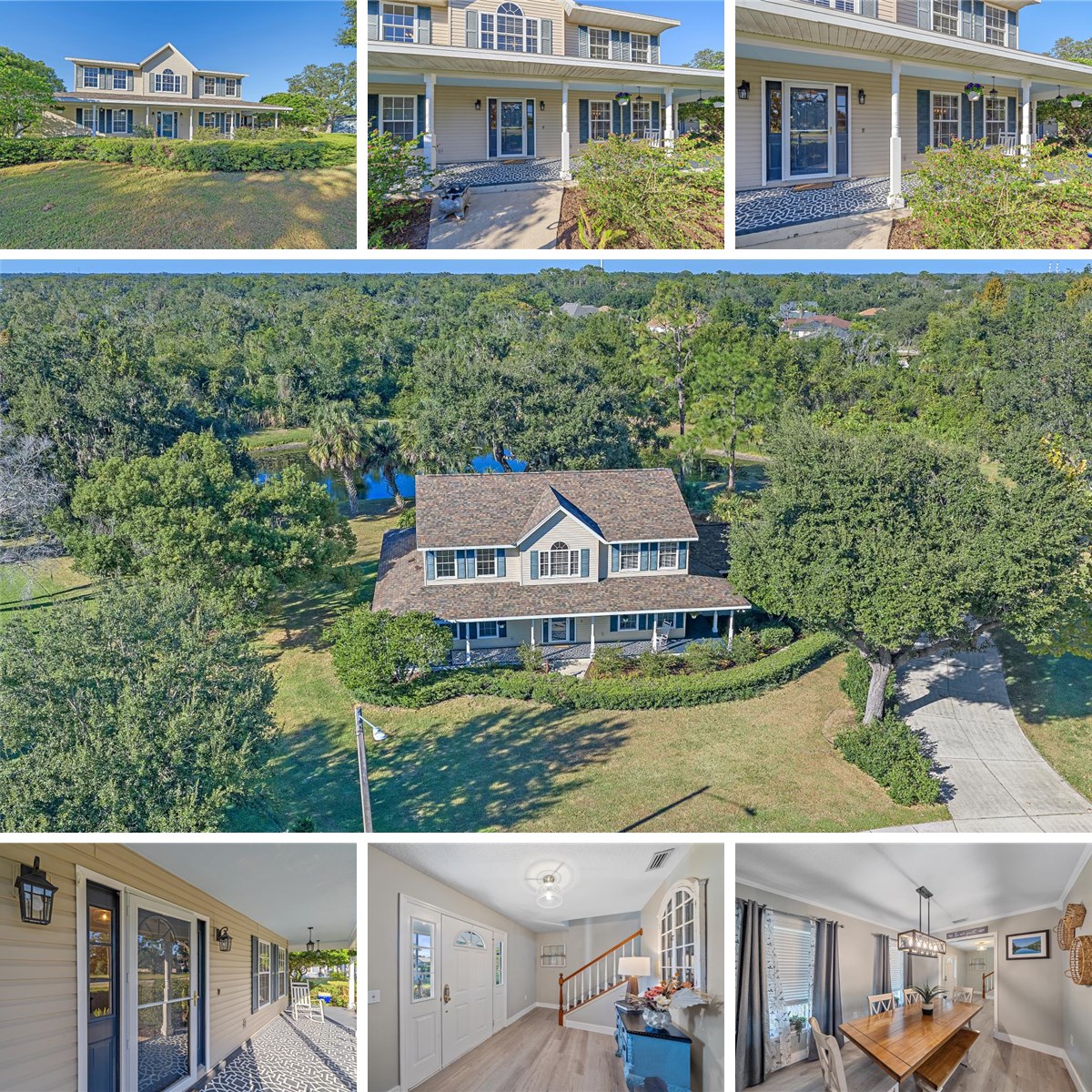 WELCOME HOME to this beautifully updated home offering space, privacy, and timeless charm on a vast 3.5-acre lot. This SPACIOUS 4-bedroom, 3-bath home features soaring ceilings, a welcoming front porch, and a screened back porch overlooking the fenced backyard and beautiful (HOA-maintained) pond. The remodeled kitchen shines with modern finishes and opens to spacious living and dining areas. Bathrooms have been tastefully refreshed, and the home’s layout offers flexibility, with a large loft that is perfect for a home office, playroom, or guest space.