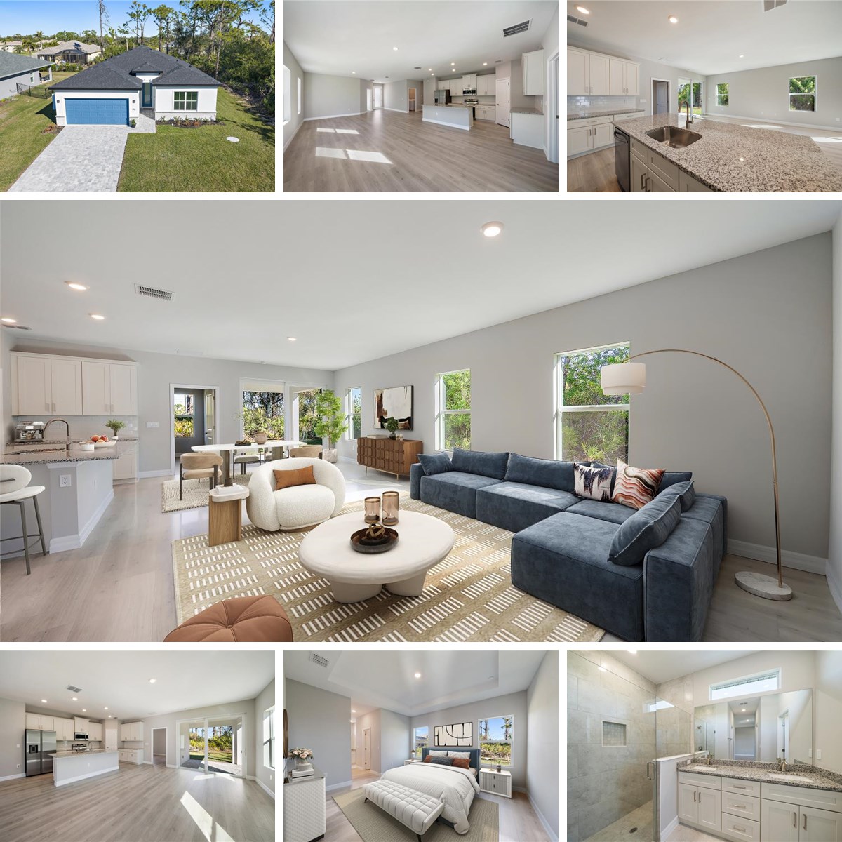 Brand NEW construction—move-in ready and thoughtfully finished. This nearly 2,000 sq. ft. home offers 4 bedrooms and 3 full baths with a layout that feels open, light, and comfortable from the moment you walk in. Impact windows and sliders bring in natural light while adding peace of mind. The kitchen is designed for real living, featuring abundant granite counter space, a long breakfast bar, a generously sized pantry, and stylish subway tile backsplash—details that set this home apart from typical new construction. Luxury laminate flooring runs throughout the home (no carpet), complemented by extra-tall baseboards, recessed lighting, and ample closet space.The floor plan offers flexibility for any stage of life. A front guest bedroom with its own private bath is ideal for visitors, multigenerational living, or a home office. Two additional bedrooms share a full bath, while the primary suite is a true retreat with a spa-like shower, double sinks, and two walk-in closets. The separate laundry room comes complete with a washer and dryer already in place. Located in Rotonda Lakes, fencing is allowed, the HOA fee is just $135 per year, there is no CDD, and the home sits in an X flood zone. With brand-new, to-code construction, this is a home built for today’s lifestyle. Surrounded by five nearby golf courses, close to shopping, dining, and everyday conveniences, this home offers the perfect balance— with space and functionality easy Florida living. This isn’t just new construction. It’s done right.
