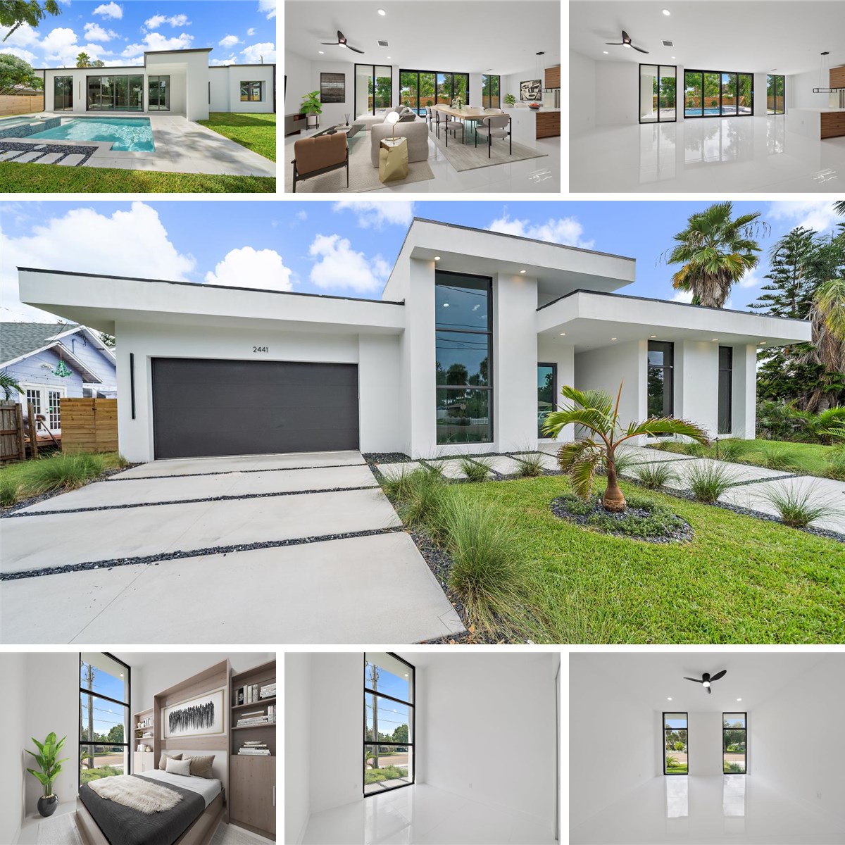 Vibrant, sophisticated, and undeniably cool, this brand-new 2025 custom contemporary Sarasota pool home is more than just a residence—it’s a vibe. Designed for those who appreciate modern luxury with effortless functionality, this striking new construction residence offers a rare blend of sleek architectural design, spacious interiors, and resort-style outdoor living. Perfectly positioned just minutes from downtown Sarasota, Siesta Key, and the Gulf beaches, it captures the essence of Florida’s coastal lifestyle with a bold, fresh twist. Set on an expansive 85’ x 117’ lot, the property delivers privacy and serenity behind its fully fenced grounds. The backyard retreat is anchored by a heated pool and spa with a sun shelf water feature, framed by lush greenery and a small shaded alcove that invites both intimate evenings and lively gatherings. North-facing orientation ensures the perfect balance of sunlight without excessive heat, while the all-concrete block construction, impact-rated glass, and durable roof promise long-lasting strength and efficiency. Inside of this 1-story home, soaring 9 foot ++ ceilings and walls of glass flood the home with natural light, illuminating the seamless flow of large-format porcelain tile flooring. The open-concept living and dining spaces merge effortlessly with a chef’s dream kitchen, complete with a dramatic waterfall island, Monogram stainless steel appliances, induction cooktop, InstaHot water feature, and custom soft-close cabinetry. Every surface, every finish, and every detail is brand-new—designed to impress yet built for comfort. With 4 bedrooms, 3.5 baths, including three ensuites, the floor plan of 2,726sf under air is ideal for multi-generational living, extended guests, or seasonal visitors. The primary suite serves as a private sanctuary with dual walk-in closets and a spa-style bath featuring dual vanities, LED-lit mirrors, and a freestanding soaking tub encased within a glass shower retreat. Secondary suites each offer their own sense of luxury and privacy, while a striking front-facing bedroom with towering windows makes a stunning architectural statement. Practicality enhances the elegance with low insurance costs, Flood Zone X designation (no flood insurance required), and no HOA or CDD restrictions. The home’s flexible leasing rules allow monthly rentals up to 12 times per year, making it an Airbnb-ready investment as well as a luxurious personal residence. Nestled in the highly sought-after Southside Elementary School district, it offers not only modern design and efficiency but also one of Sarasota’s most coveted locations. Every element of this home has been carefully curated to deliver a lifestyle that is sophisticated, low-maintenance, and distinctly Sarasota. It is a statement piece of modern architecture paired with all the comforts of a brand-new build, offering its very first owner the rare opportunity to live in a home that is stylish, efficient, and completely turnkey. This is Sarasota luxury living redefined—schedule your private tour today and feel the energy of this one-of-a-kind home. Seller (and creative) financing available too so inquire with the agent!